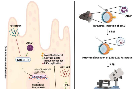 这篇论文由韦恩州立大学医学院眼科、视觉和解剖科学系的一组研究人员撰写,“靶向 ABCG1 和 SREBP-2 介导的胆固醇稳态可改善寨卡病毒引起的眼部病理学”,提供了令人信服的证据胆固醇代谢参与 ZIKV 相关眼部异常。